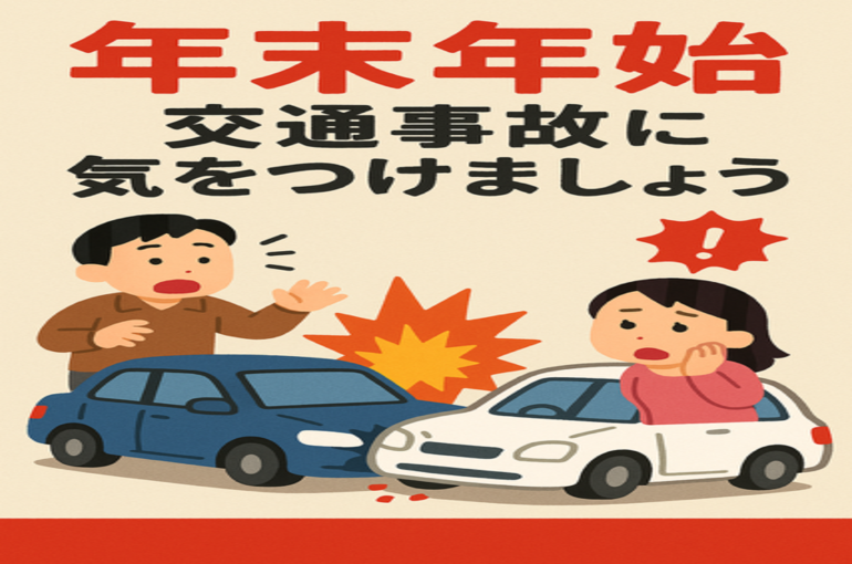 「年末年始、交通事故にご注意を!!」 12月は1年間でもっとも交通事故が多く発生すると言われています。